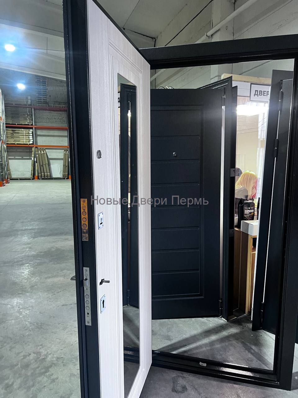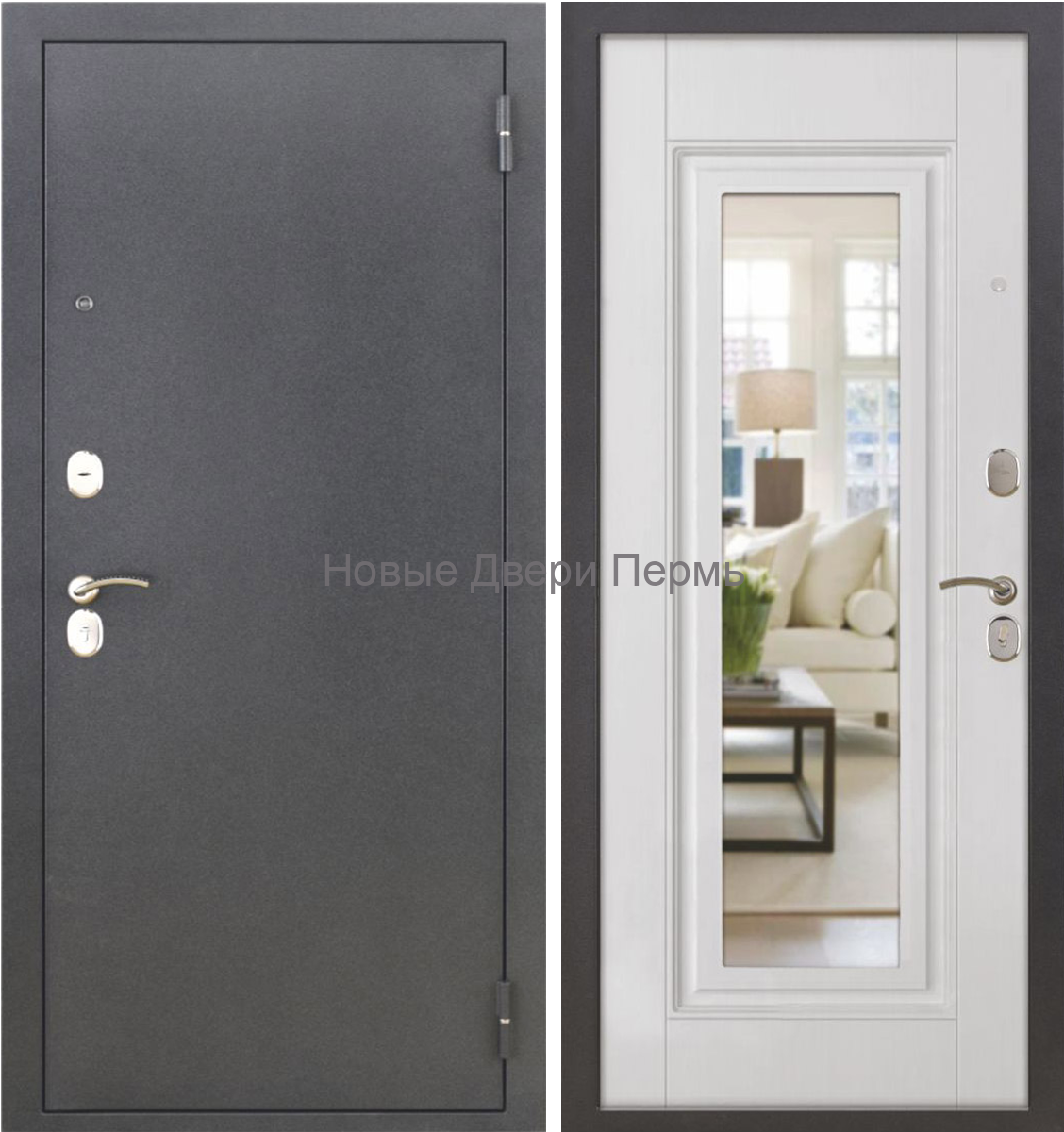 Входная дверь 2К Зеркало Антик серебро / Беленый дуб — купить в Перми Стильная и надёжная модель, которая сочетает современный дизайн, долговечность и удобство. Это идеальное решение для квартиры или частного дома. Отделка выполнена в цвете антик серебро снаружи и белое дерево внутри, что придаёт интерьеру свет и элегантность.