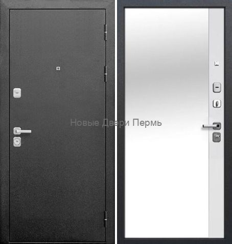 Входная дверь 9см Серебро зеркало Эмалит белый