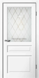 Классическая межкомнатная дверь CLASSIC C3 белого цвета с художественным стеклом «английская решётка» и покрытием эмалит.