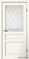 Классическая межкомнатная дверь CLASSIC C3 в цвете ваниль с художественным стеклом «английская решётка» и покрытием эмалит.