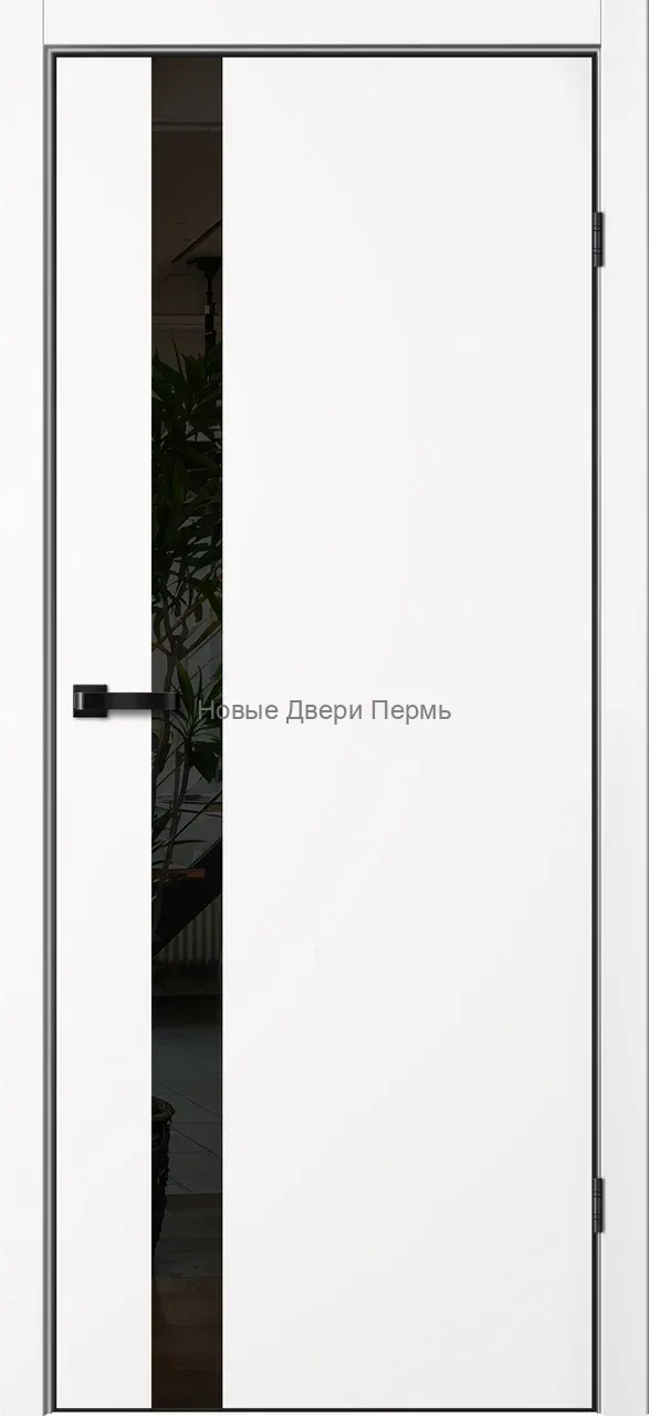 Дверь TR-6 TRINITY в цвете Арктик с черным лакобелем, алюминиевая кромка, покрытие GVI, встроенный магнитный замок, толщина 42 мм.