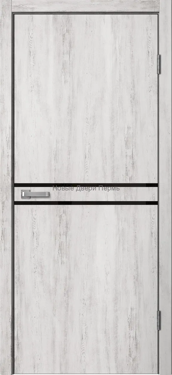 Чёрный пластиковый молдинг создаёт стильный акцент и подчёркивает архитектурность дверного полотна. Телескопический погонаж облегчает монтаж, обеспечивает плотное прилегание и помогает скрыть неровности проёма. Чёрная ПВХ-кромка, выполненная по всем четырём сторонам, увеличивает износостойкость и придаёт двери завершённый вид.
