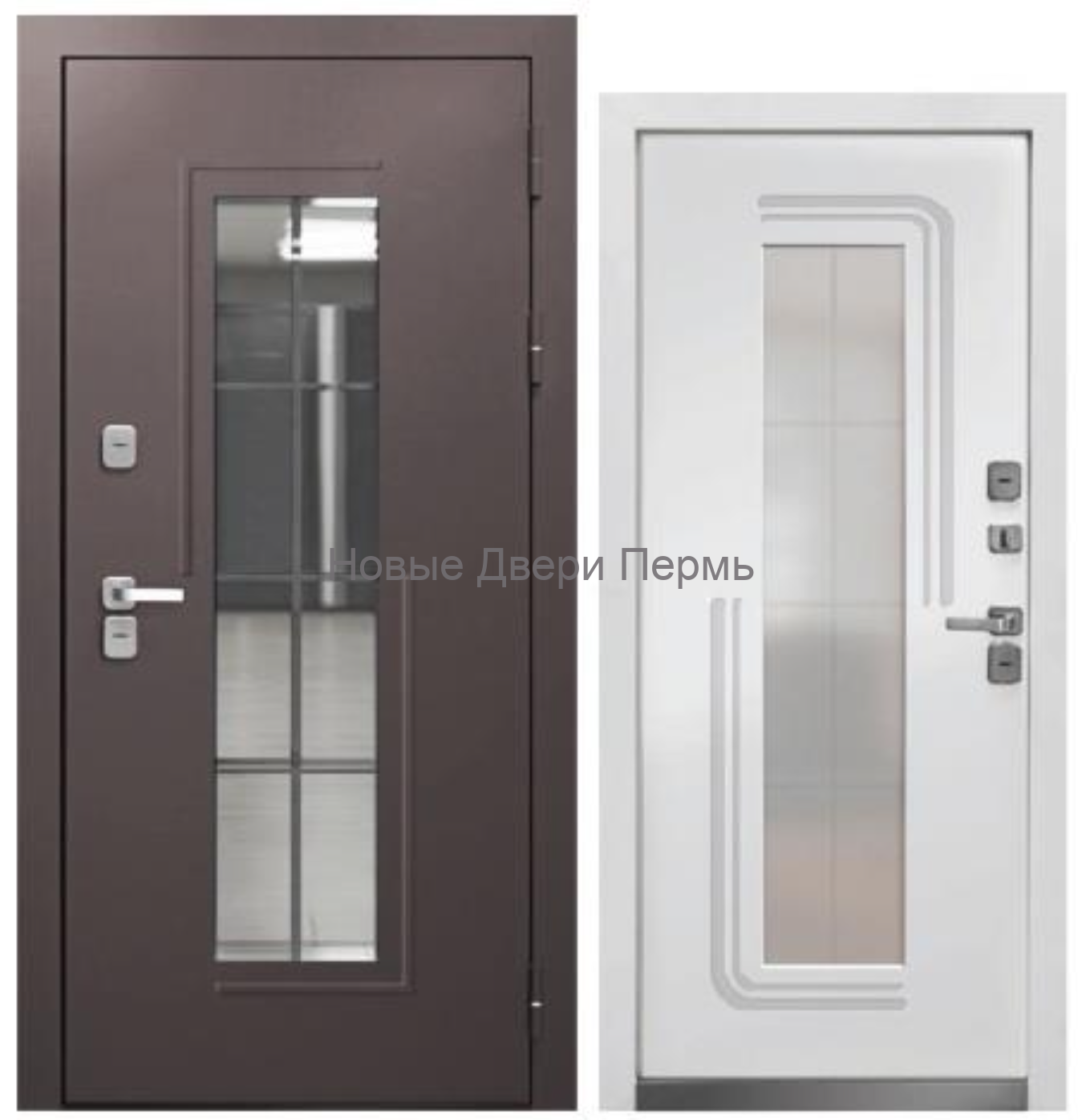 Снаружи модель доступна в покрытиях «Букле шоколад» и «Муар синий», стойких к атмосферному воздействию. Внутри установлена панель МДФ 12 мм в оттенке «Эмалит белый», что делает дверь универсальной для современных интерьеров.