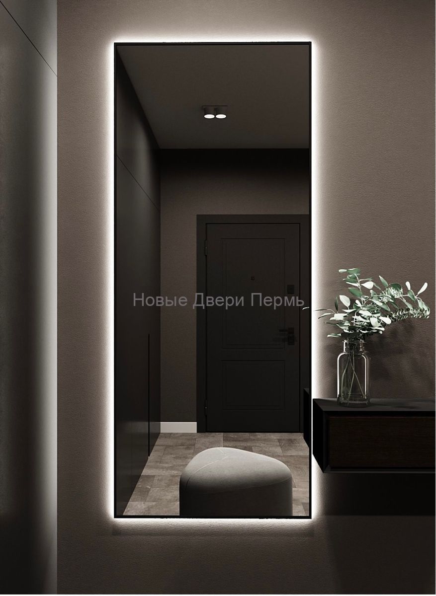 Прямоугольное зеркало с подсветкой в металлической раме можно изготовить по индивидуальным размерам под конкретную стену, мебель или нишу. Доступны вертикальная и горизонтальная ориентация, боковая или контурная подсветка, тёплый, нейтральный или холодный оттенок света в зависимости от задач помещения. Цвет рамки подбирается под интерьер: чёрный, графит, белый, латунь, золото, хром или любой оттенок по каталогу RAL, что позволяет гармонично сочетать зеркало с мебелью и фурнитурой.