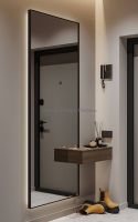 Прямоугольное зеркало с подсветкой в металлической раме можно изготовить по индивидуальным размерам под конкретную стену, мебель или нишу. Доступны вертикальная и горизонтальная ориентация, боковая или контурная подсветка, тёплый, нейтральный или холодный оттенок света в зависимости от задач помещения. Цвет рамки подбирается под интерьер: чёрный, графит, белый, латунь, золото, хром или любой оттенок по каталогу RAL, что позволяет гармонично сочетать зеркало с мебелью и фурнитурой.