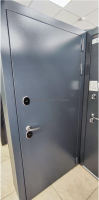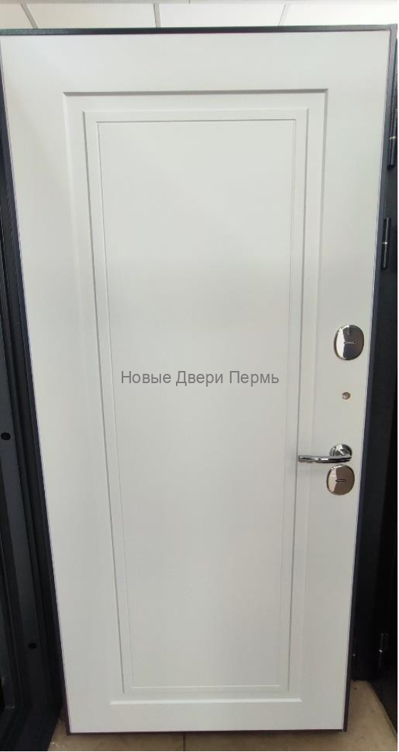 Снаружи дверь имеет стойкое порошковое покрытие Шагрень серая, которое не выгорает и не боится механических воздействий. Внутренняя отделка выполнена в виде панели НЭО белый матовый, создающей аккуратный, светлый и лаконичный интерьер.