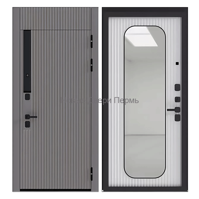 Страж 3К Деспи — современная входная дверь с выразительной отделкой в стиле «ФЛ Волна» и панелью МДФ 16 мм цвета серый кварц. Внутренняя сторона выполнена в белом матовом оттенке с декоративным порящим зеркалом, что делает дверь эффектной и функциональной. Полотно толщиной 100 мм с утеплением Knauf обеспечивает надежную тепло- и шумоизоляцию. Замки Guardian 3015 и цилиндровый механизм 3-го класса отвечают за высокий уровень безопасности.